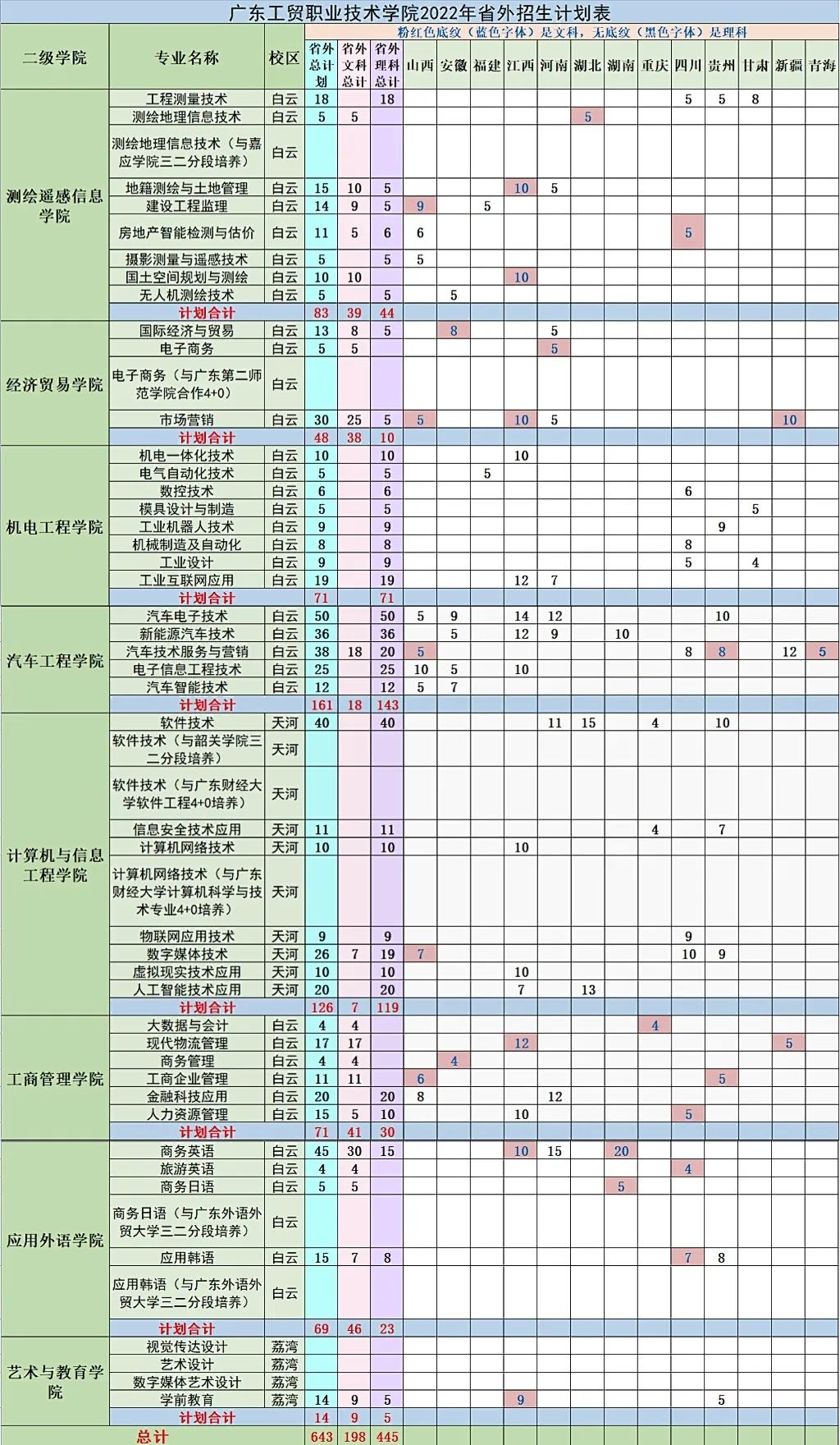 广东省外招生计划