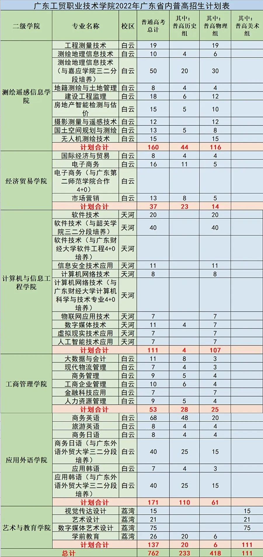 广东省内招生计划